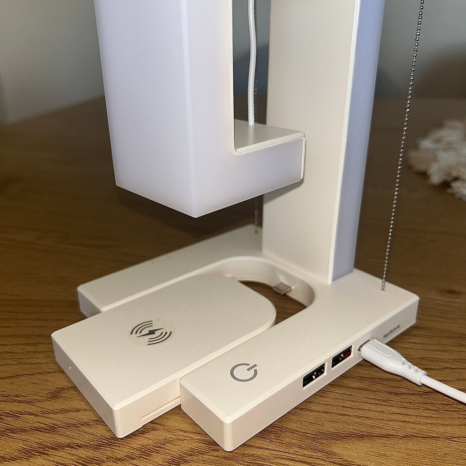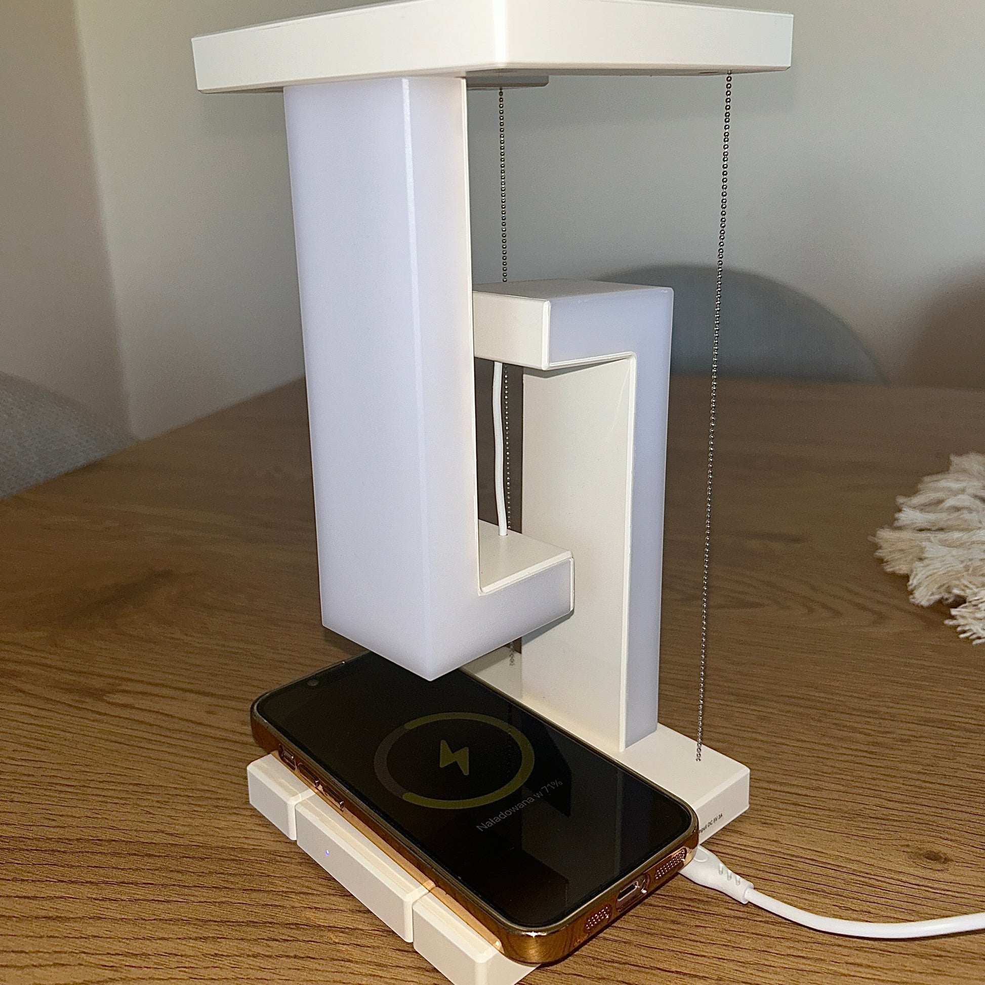 Jako lampka nocna z delikatnym światłem i ładowarką pod ręką.